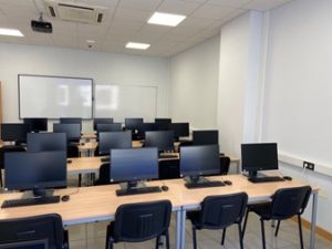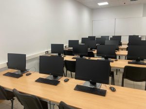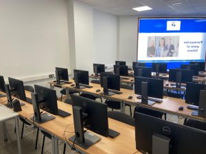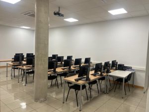 Las cuatro aulas teóricas están dotadas con equipos informáticos de última generación ALL IN ONE, con pantallas de 22” y procesador Core i5.