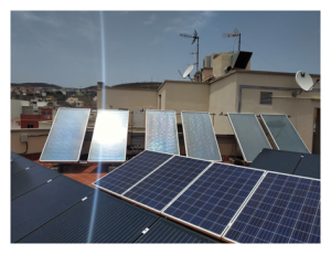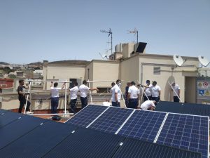 El campo de prácticas (cubierta del inmueble) es el espacio al aire libre destinado a la ubicación del equipamiento necesario para el aprendizaje del alumnado relacionado con instalaciones térmicas y fotovoltaicas, así como el relativo a las especialidades de telecomunicaciones.