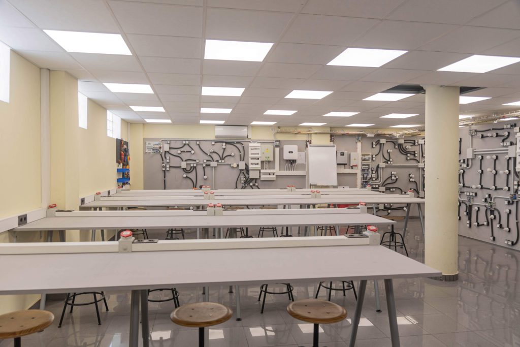 Las instalaciones de CETEPRO están compuestas por cuatro aulas teóricas, tres talleres y un campo de prácticas.
