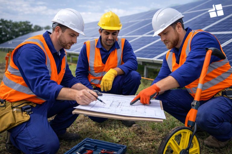 – Operadores en central solar fotovoltaica.